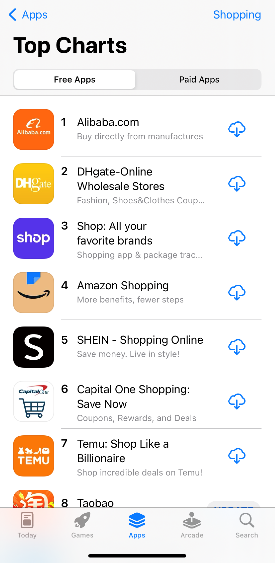 4月23日消息,最新数据显示,阿里巴巴国际站在美国App Store购物类榜单中成功攀升至第一名,同时还在全球120多个国家的App下载榜单中跻身前十名。
