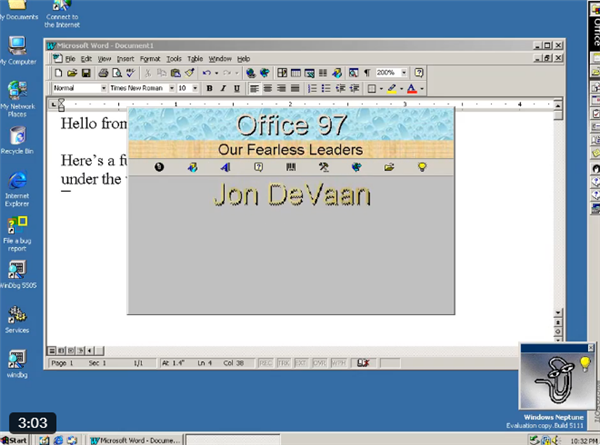 Office 97内置《模拟飞行》(Excel)和《弹珠台》(Word)等彩蛋此前都已被发现,然而,Albacore发现的这个彩蛋触发条件极其复杂,几乎不可能被意外撞见。