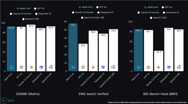这款模型只是一个320亿参数的小模型,主打4bit量化,但AI榜单上表现非常强,GSM8K数学榜单上超过了DeepSeek V3,跟GPT-4o、Qwen 2.5-30B一个档次,略低于Cluade 3.5。