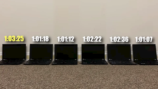 本次测试使用了六台联想ThinkPad X220笔记本电脑,均配备酷睿i5-2520M处理器、8GB内存和256GB机械硬盘,并分别运行最新版本的Windows XP、Windows Vista、Windows 7、Windows 8.1、Windows 10和Windows 11系统。仅从配置来看,本次测试方法明显偏向于旧版系统,但也能说明一些问题,Windows 11确实对老机器太不友好了。