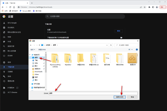 4、在打开的窗口界面中,重新选择设置一个文件保存路径。