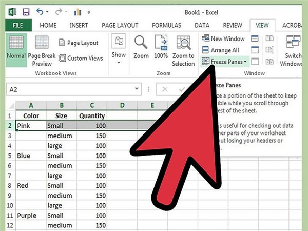 2)选定此单元格,使用"冻结单元格"命令。现在,您可以上下左右滚动,保持标题行可见。