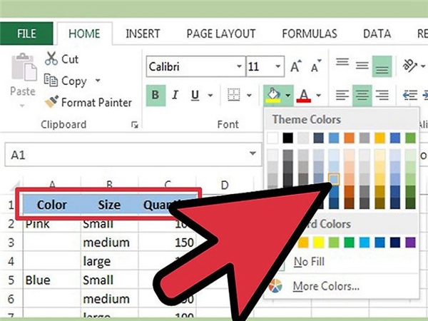 3、单击作为标题行的第一个单元格并向右拖动打亮这些单元格。
